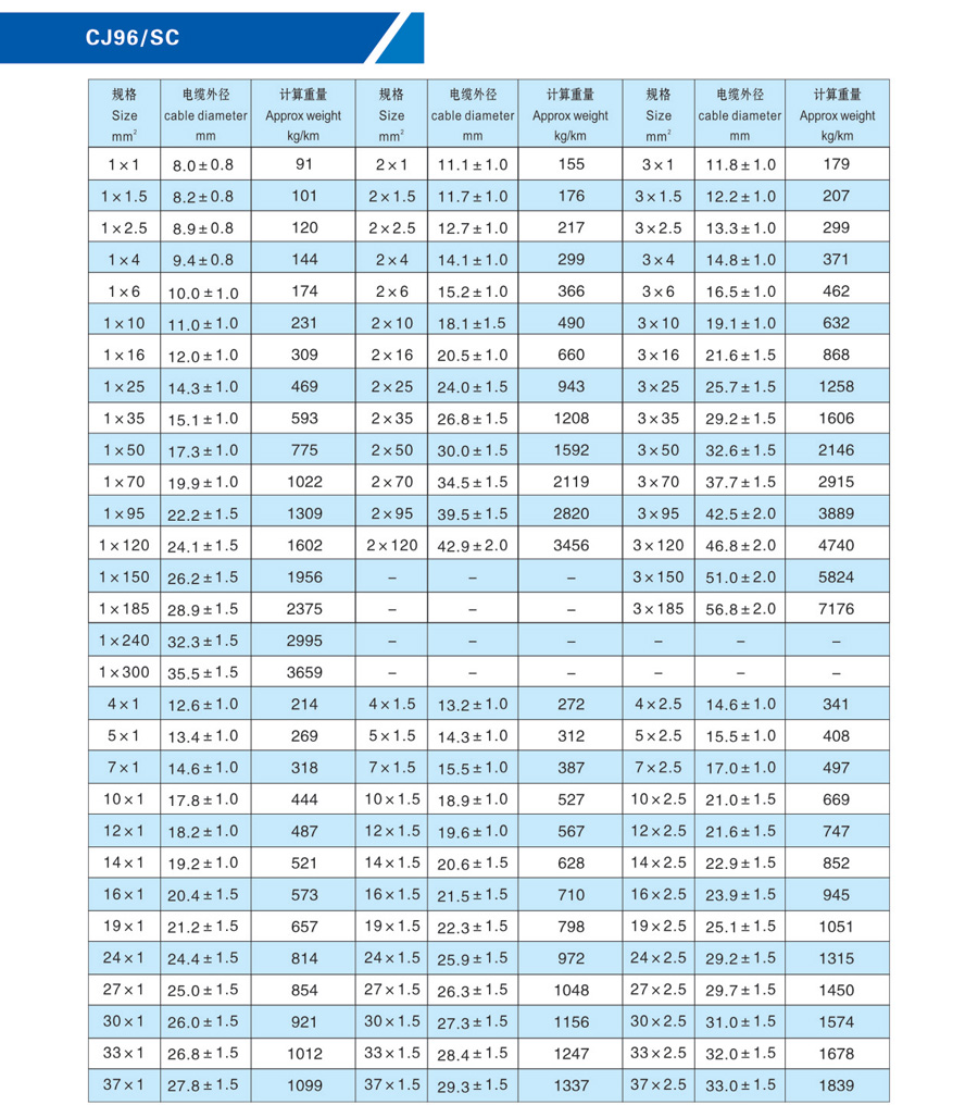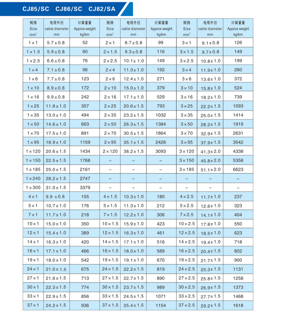 0.6/1kV CJ85/SC CJ86/SC CJ82/SA CJ96/SC